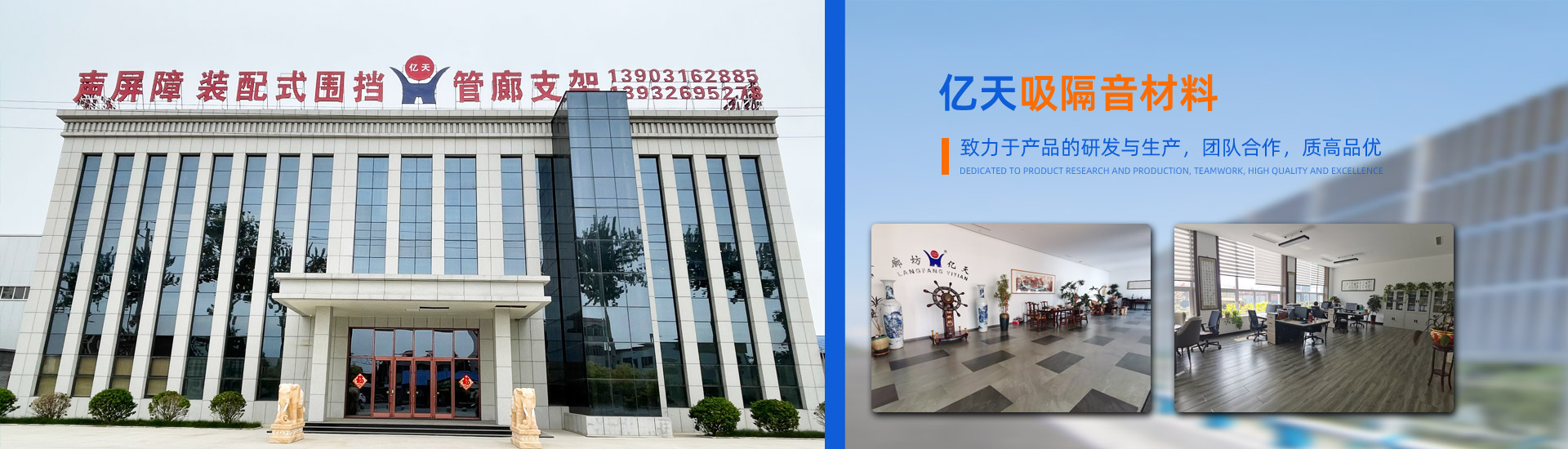廊坊億天吸隔音材料有限公司于1997年建廠,公司位于河北省廊坊市文安縣興隆宮鎮(zhèn)朱河村工業(yè)區(qū),地處京、津、冀金三角地帶,注冊資金8005萬元。公司一直致力于環(huán)保產(chǎn)品的研發(fā)與生產(chǎn),主要涉足于公路鐵路噪聲處理、廠房鋼結(jié)構(gòu)、防塵抑塵治理、環(huán)境美化四大領域。主營產(chǎn)品有高速鐵路用···
